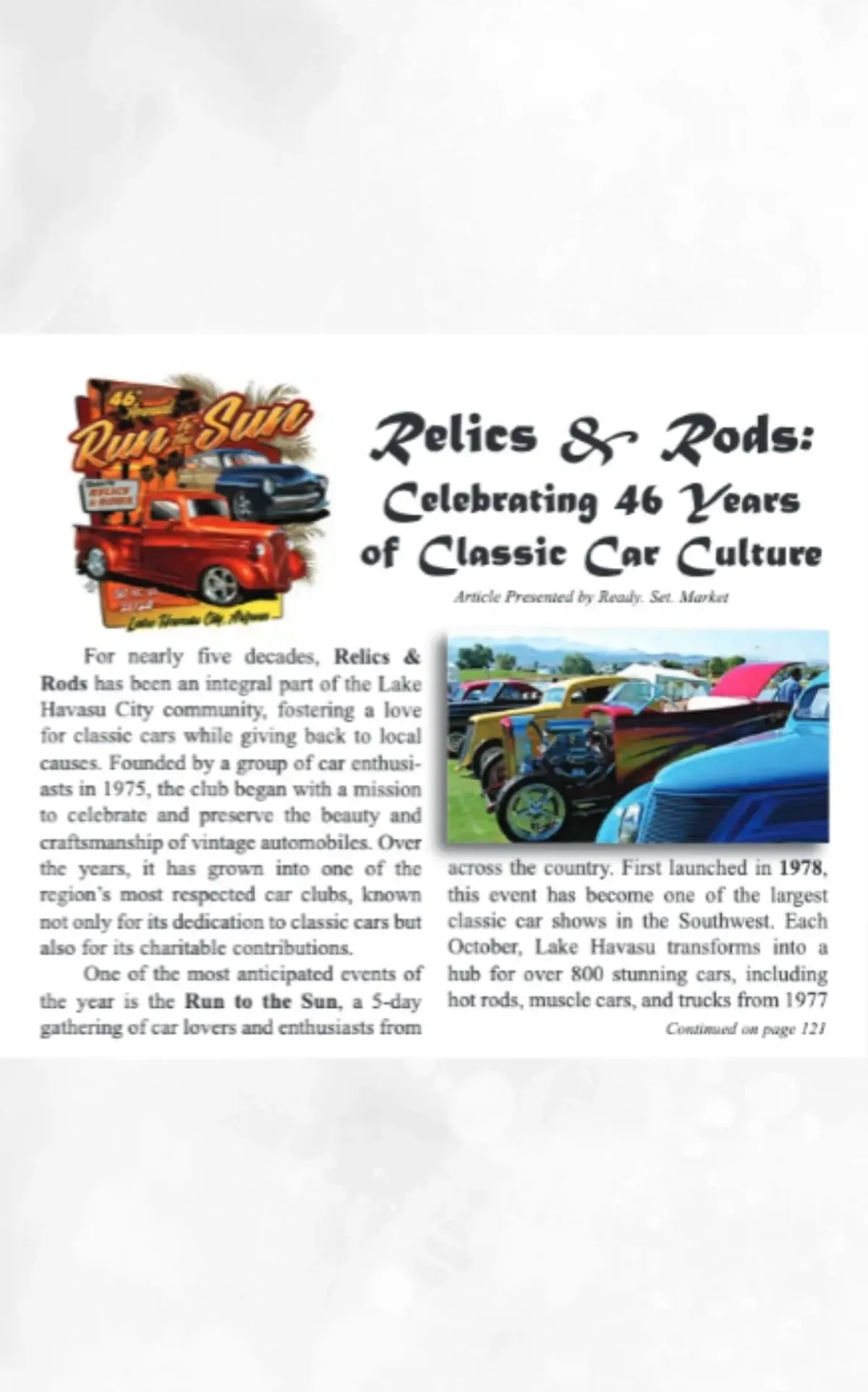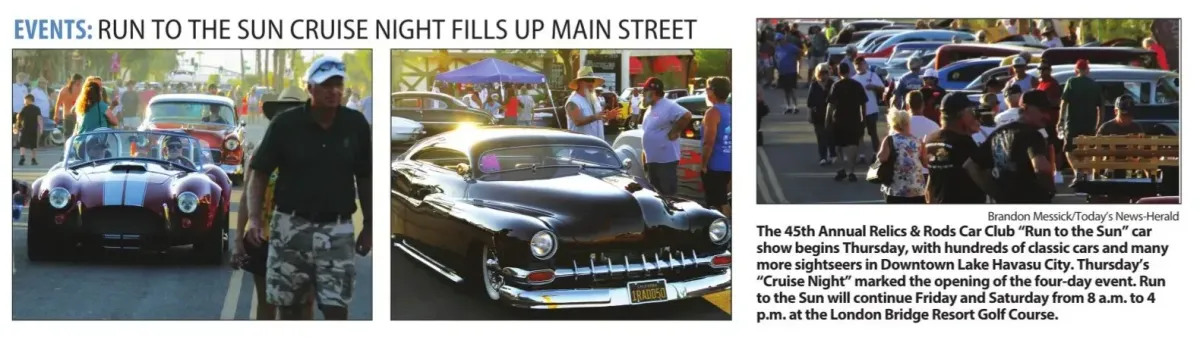 The 47th Annual Run to the Sun, hosted by the Relics and Rods Car Club, once again filled Lake Havasu City with the unmistakable rumble of classic engines and community pride. Featured across multiple articles by Today’s News-Herald, this year’s event captured the heart of Lake Havasu City with a weeklong celebration of vintage vehicles, charitable spirit, and small-town camaraderie.